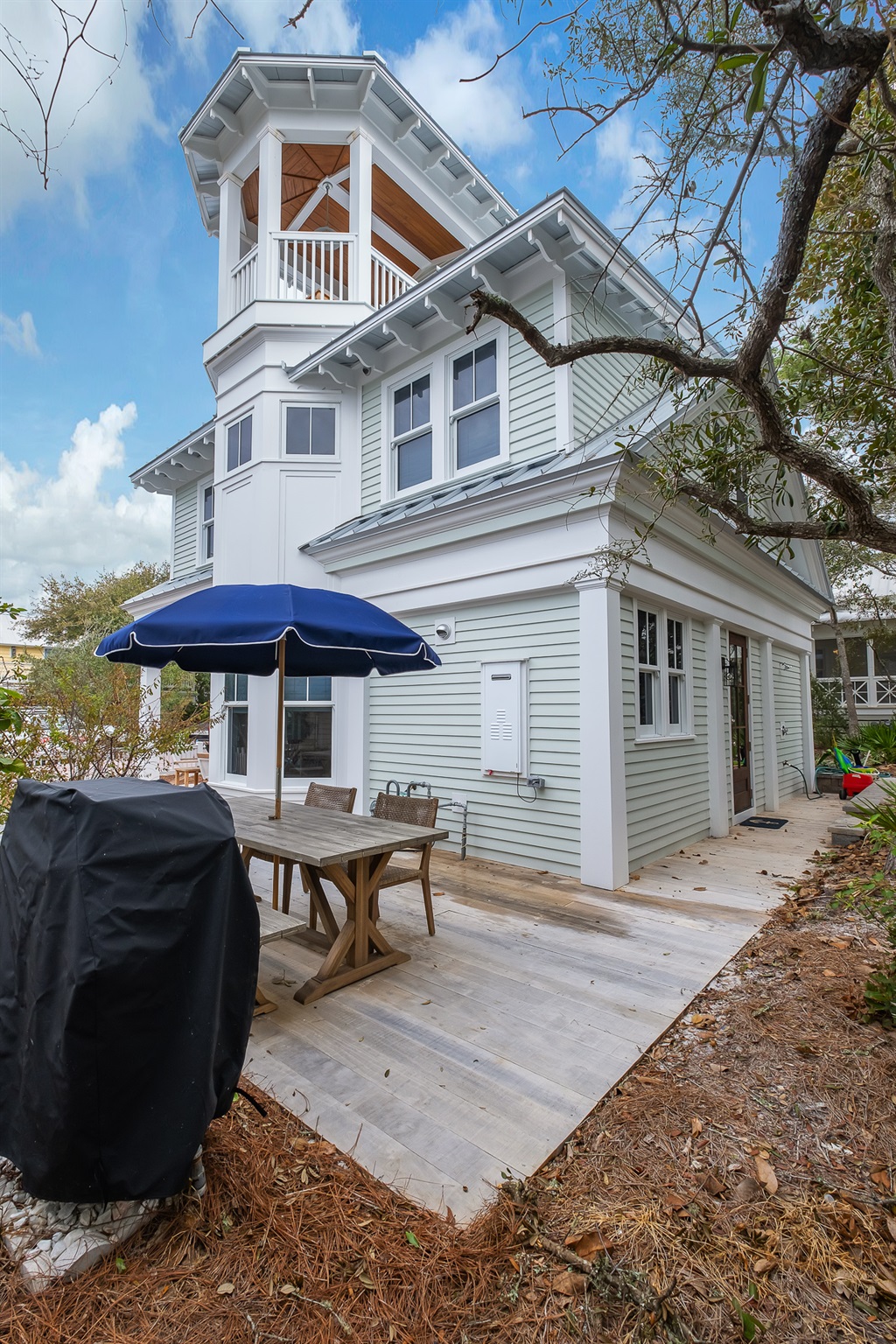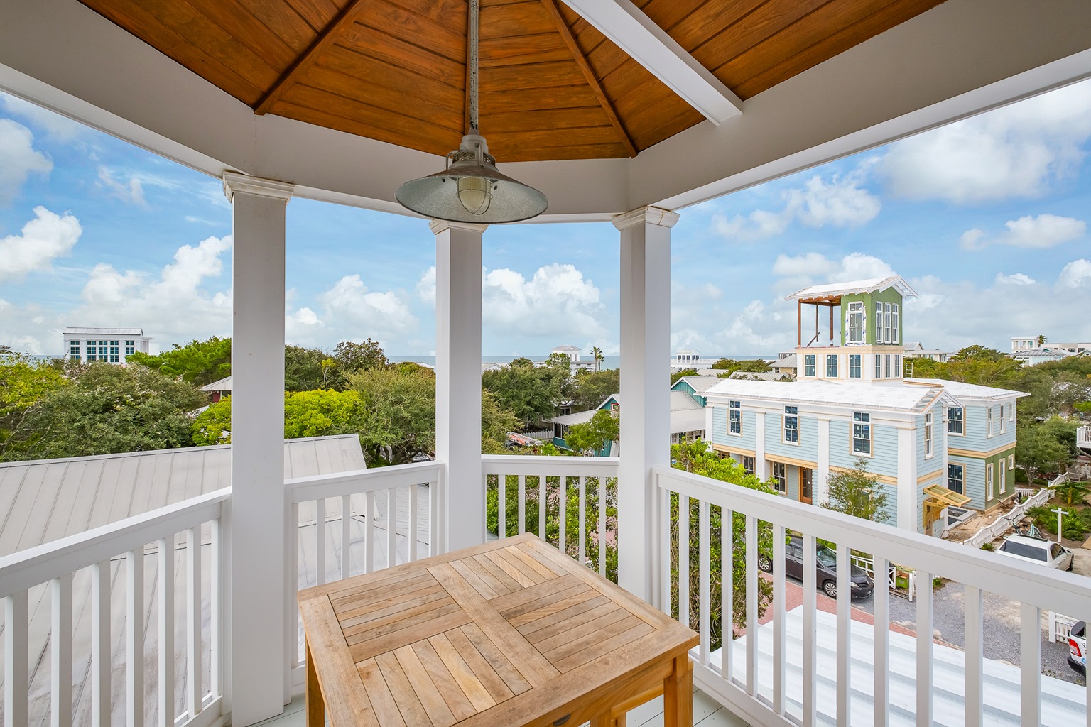 The third level tower has a table for 4 and 2 chairs for sitting, with a very clear view of the Gulf of Mexico and the Town of Seaside.