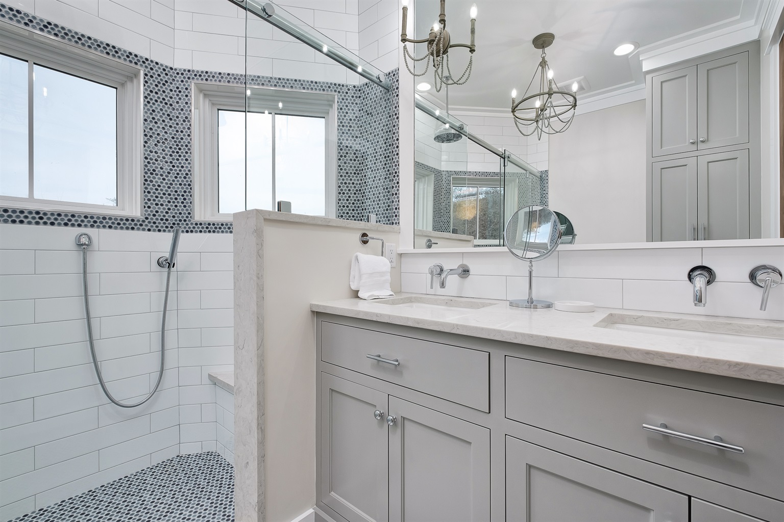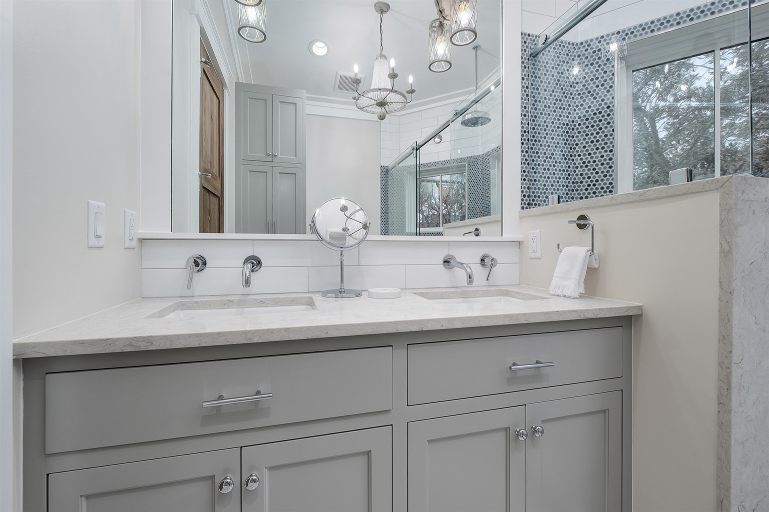 The second level boasts two king bedrooms, both with private ensuite baths and closets. The ensuite baths for the King bedrooms both have dual vanities with a rain head shower and a seating bench with hand held wand to easily bathe smaller children. Both King bedrooms have 50" QLED TVs.