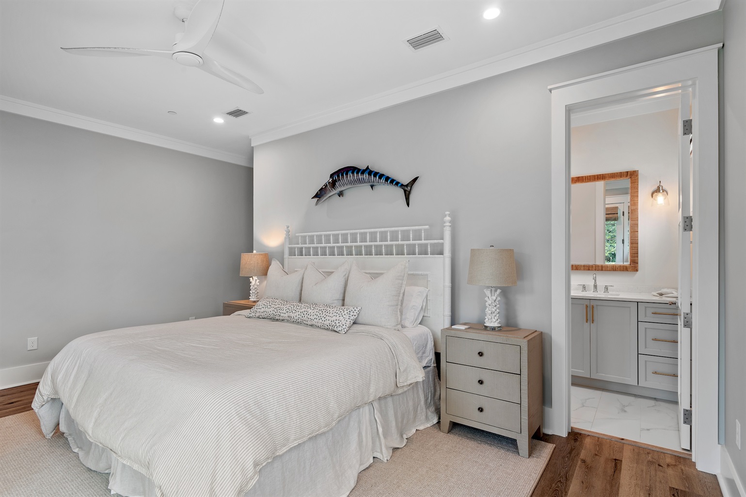 5 Bedrooms • 7 Bathrooms (5 full, 2 half) 7 Baths (5 full, 2 half) • Sleeps 9-16This exclusive, stunning residence is presented to the rental market for the first time ever for limited dates, and by request only. Prepare to be wowed as you step inside this exceptional Seaside home. Designer touches abound, with every detail of the home meticulously planned and cared for. Constructed in 2021, this 5,338 square foot home offers 5 bedrooms, 5 ensuite bathrooms, and two half baths. With three king beds, two queen beds, and a large bunk room featuring two queens and two twins, you can comfortably sleep 16 people.