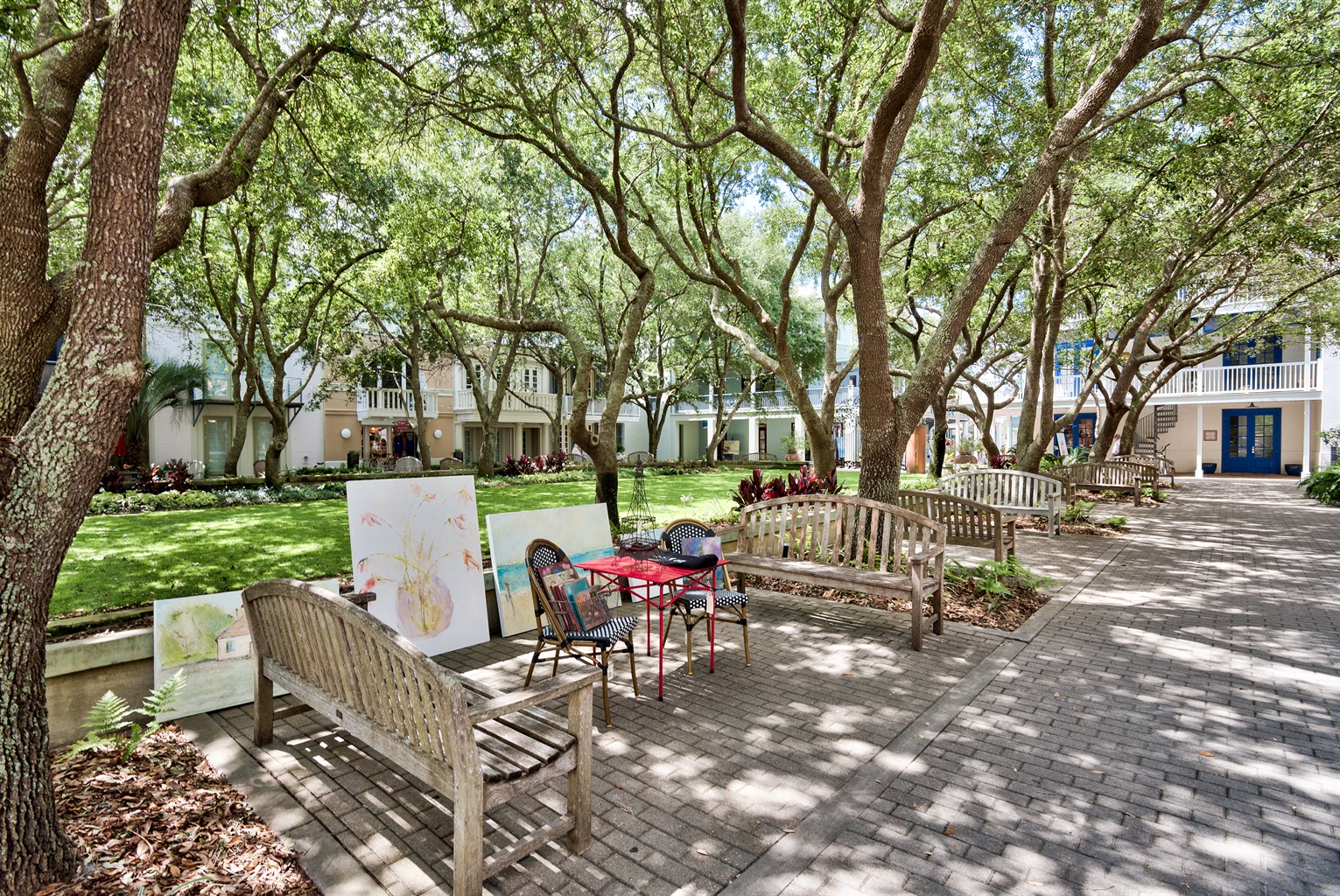 In the center of town, roughly a 4 minute walk, you will find all that has brought fame to Seaside over the years. Air stream trailers dot the center of town, the perfect spot to grab a quick lunch bite or a casual dinner while the kids run free in the grassy amphitheater. Check Seaside's event calendar for summer movie nights and seasonal music in the amphitheater. Dining and shopping options abound, and all are within walking distance. Ditch the car and enjoy your beach vacation on foot or bicycle!