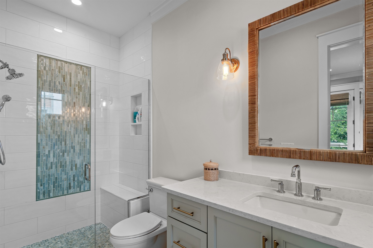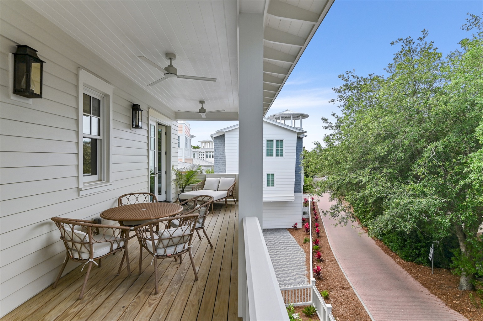 Just across the street you will find the Adult Only Pool, the Covered Family Pool, the playground, tetherball, a basketball hoop and small concrete court, volleyball courts, a shuffleboard court, croquet lawns, and the tennis center with pickleball and tennis courts. The fitness center is just three doors down from this home. This location is hard to beat with anyone wanting easy access to Seaside's amenities. Amenity passes can be optionally removed; please contact us to remove amenity passes from your stay. The private beach is just a 5 minute walk. At each beach walkover you will find a gated pavilion and bathrooms for you and your guests.
