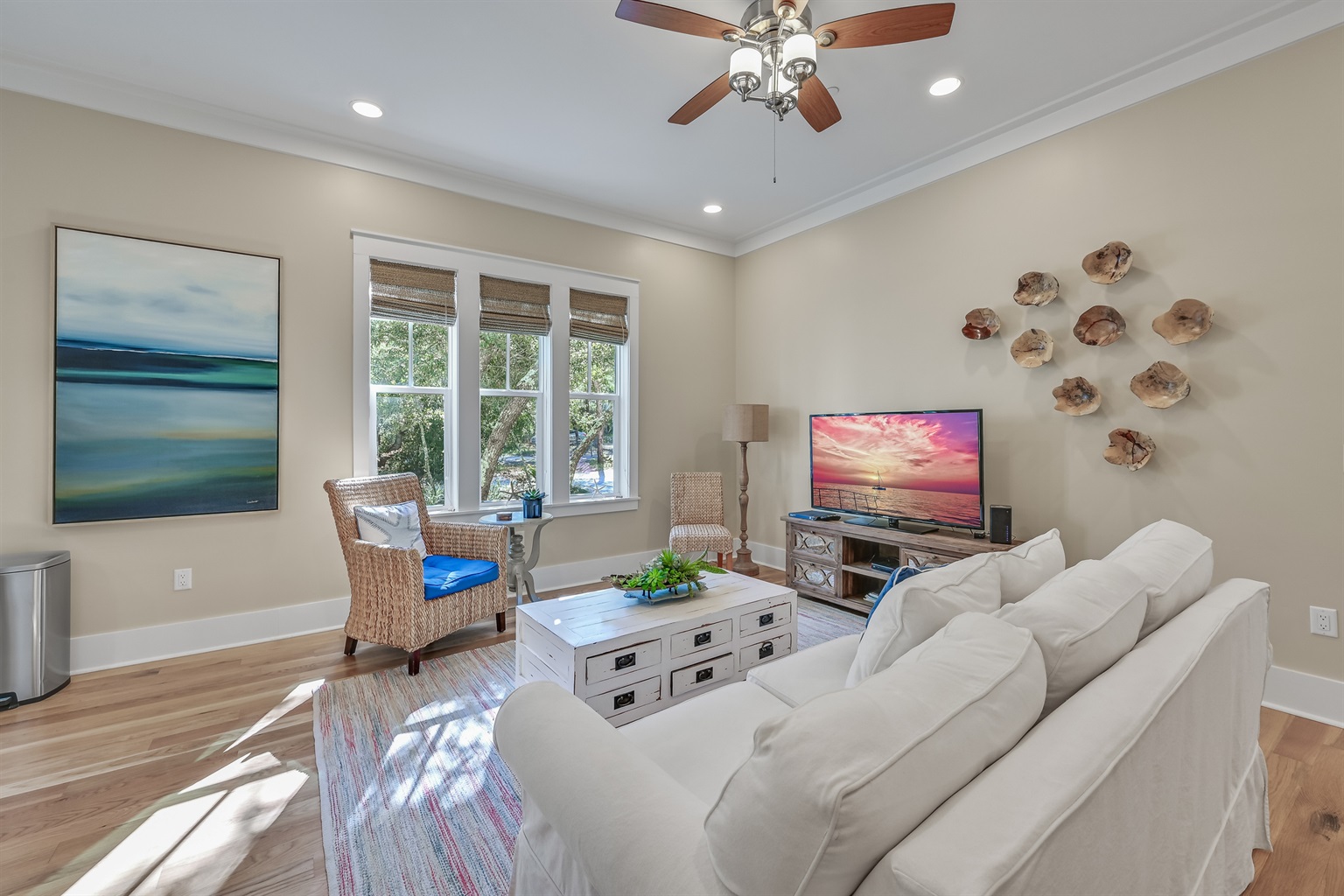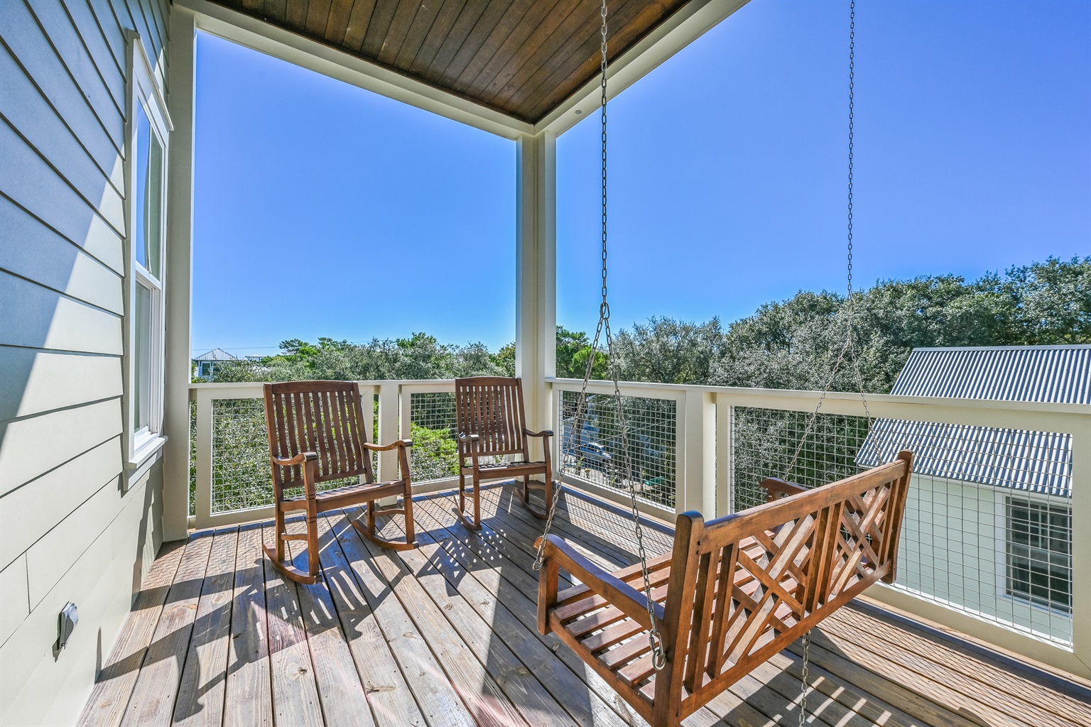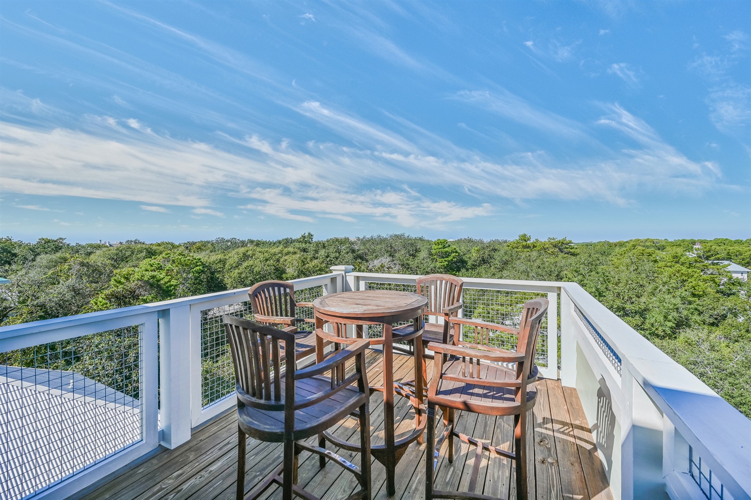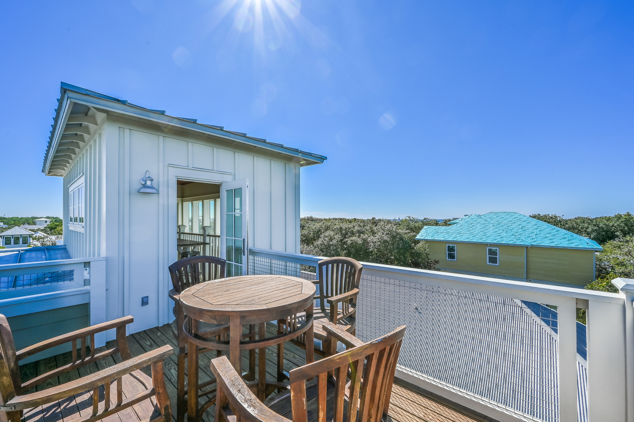 Up in the tower you will find a high-top table with peek-a-boo views of the Gulf. This is a great spot to work from if you need to squeeze in some laptop time while you are on vacation. You can enjoy use of our complimentary printer, located on the second floor, and you can print wirelessly. You will also find two rooftop decks in the tower. One deck offers two Adirondack chairs, perfect for lounging in the sun with a good breeze above the trees. The other deck offers a high-top table, which is a great spot to enjoy evening drinks while watching the sunset over the trees and the Gulf.