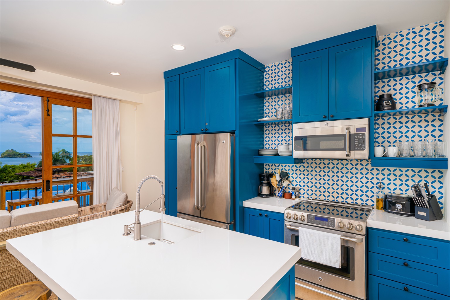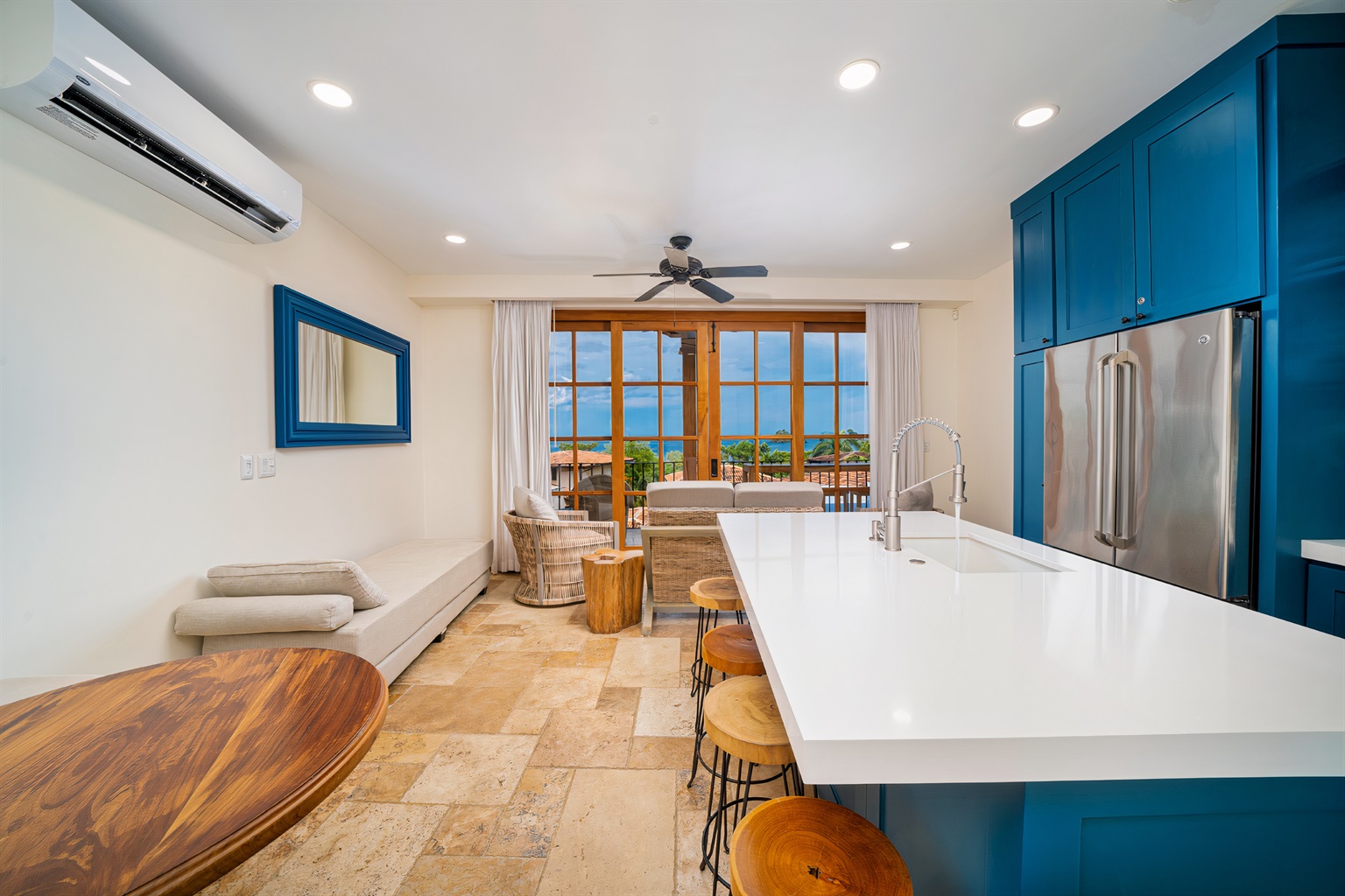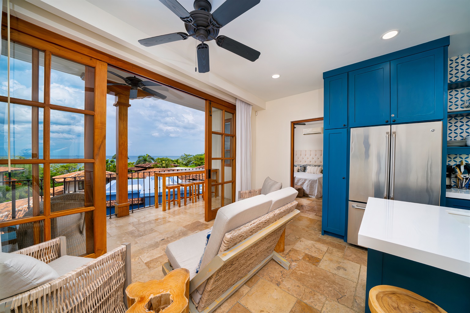 1 Bedroom • 2 Bathrooms (1 full, 1 half) 2 Baths (1 full, 1 half) • Sleeps 1-4Seaside Sunset Too! is the sister property to our 4 Bedroom Pacific Ocean Beach and View home in Las Catalinas. Sleeping two adults in a king bedroom, there is also accommodation for another adult couple or kids on the fold over double day bed in the living area.